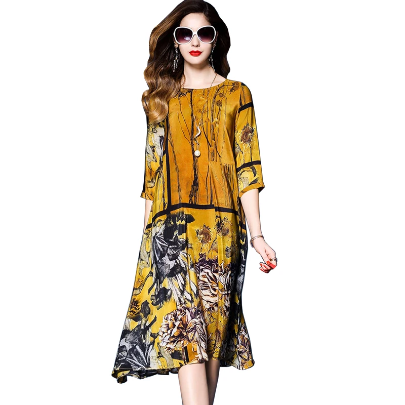 Finally, for a bold and bright look, go for a dress with large and vibrant flowers. This dress is perfect for a summer party or a night out on the town. Pair it with some statement earrings and bold lipstick for a complete look.